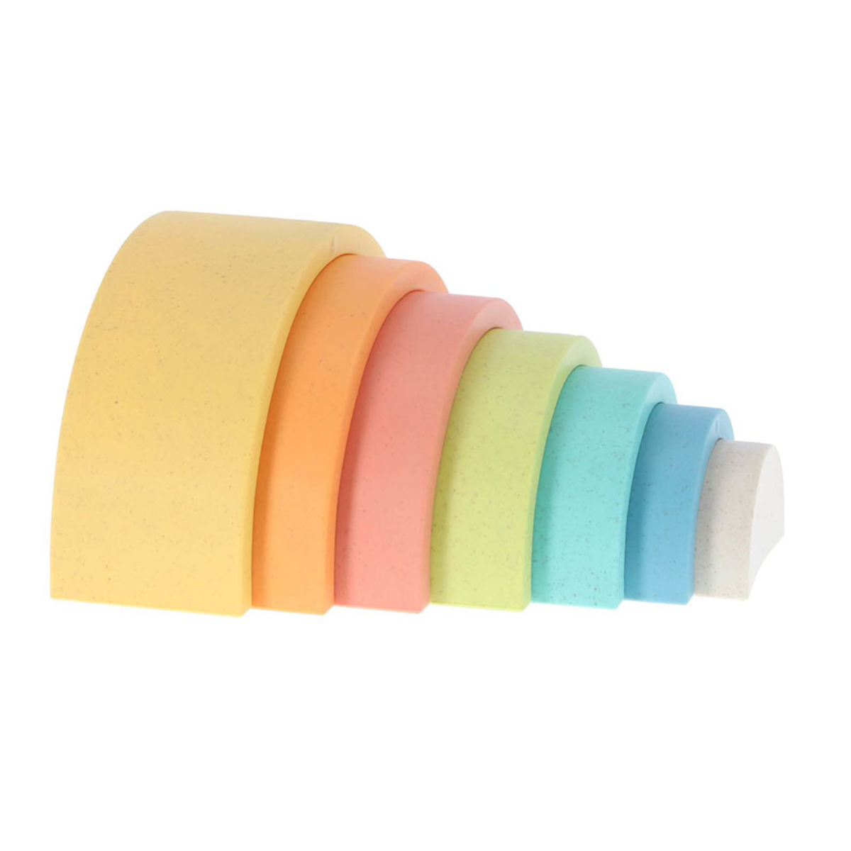 Siete arcos de colores para apilar, encajar y explorar. Desarrolla destreza manual, coordinación, creatividad y percepción de formas, colores y espacio.