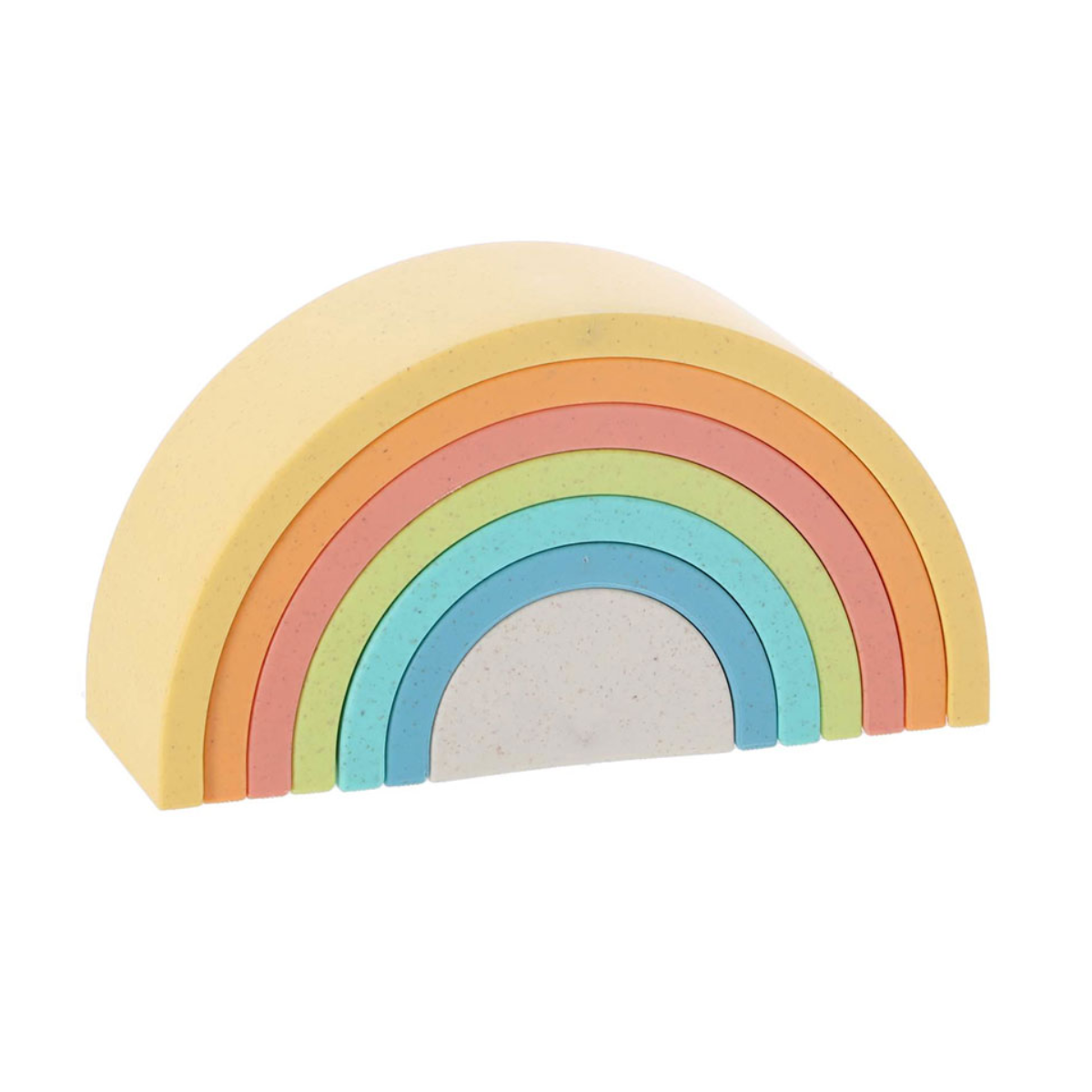 Siete arcos de colores para apilar, encajar y explorar. Este juguete desarrolla habilidades psicomotoras, percepción de formas, colores y espacio, además de estimular la creatividad, el razonamiento lógico y la destreza manual.