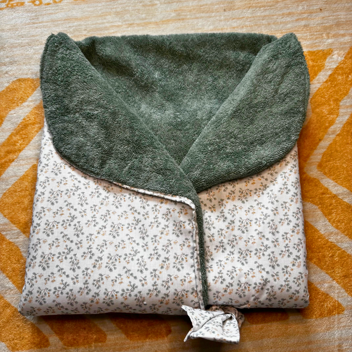 Gracias a su material, cuando pasa la etapa de recién nacido puede seguir acompañándoos como toalla de baño, alargando su uso en el tiempo. Práctico, versátil y pensado para crecer con tu bebé.