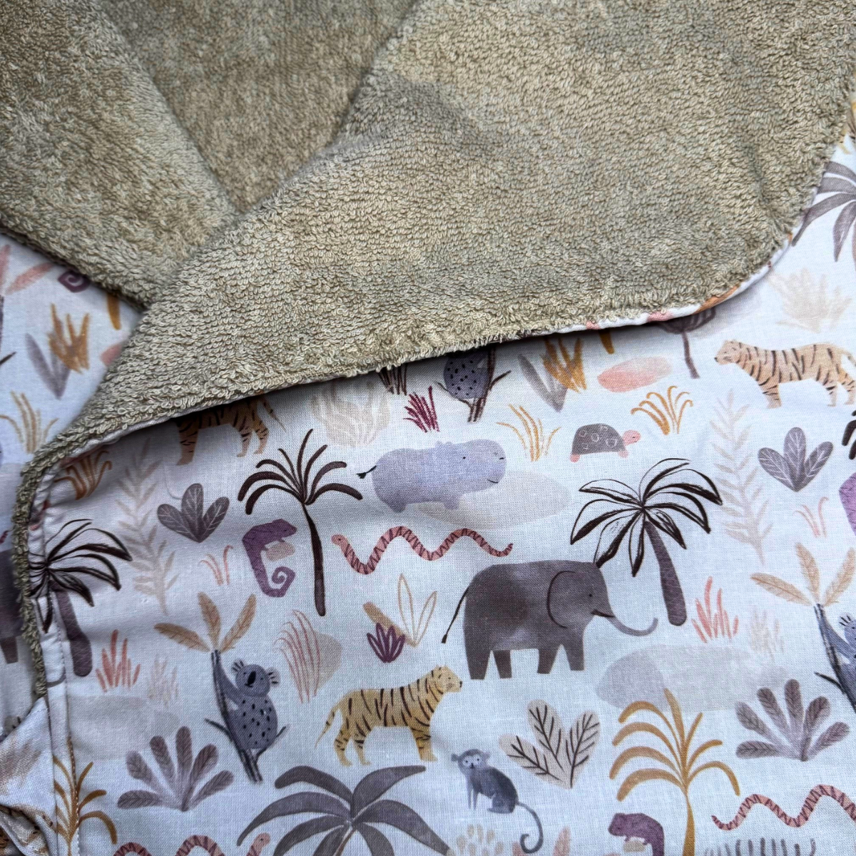Gracias a su material, cuando pasa la etapa de recién nacido puede seguir acompañándoos como toalla de baño, alargando su uso en el tiempo. Práctico, versátil y pensado para crecer con tu bebé.