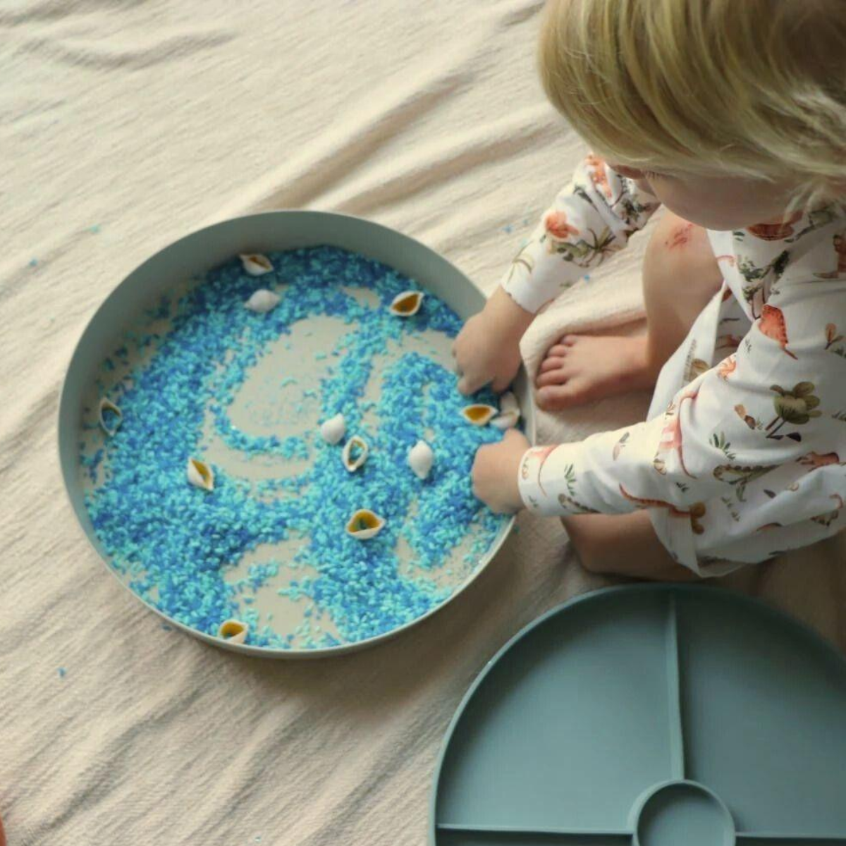Perfecta para juegos sensoriales, actividades creativas, pedagogías activas y momentos de exploración tranquila.