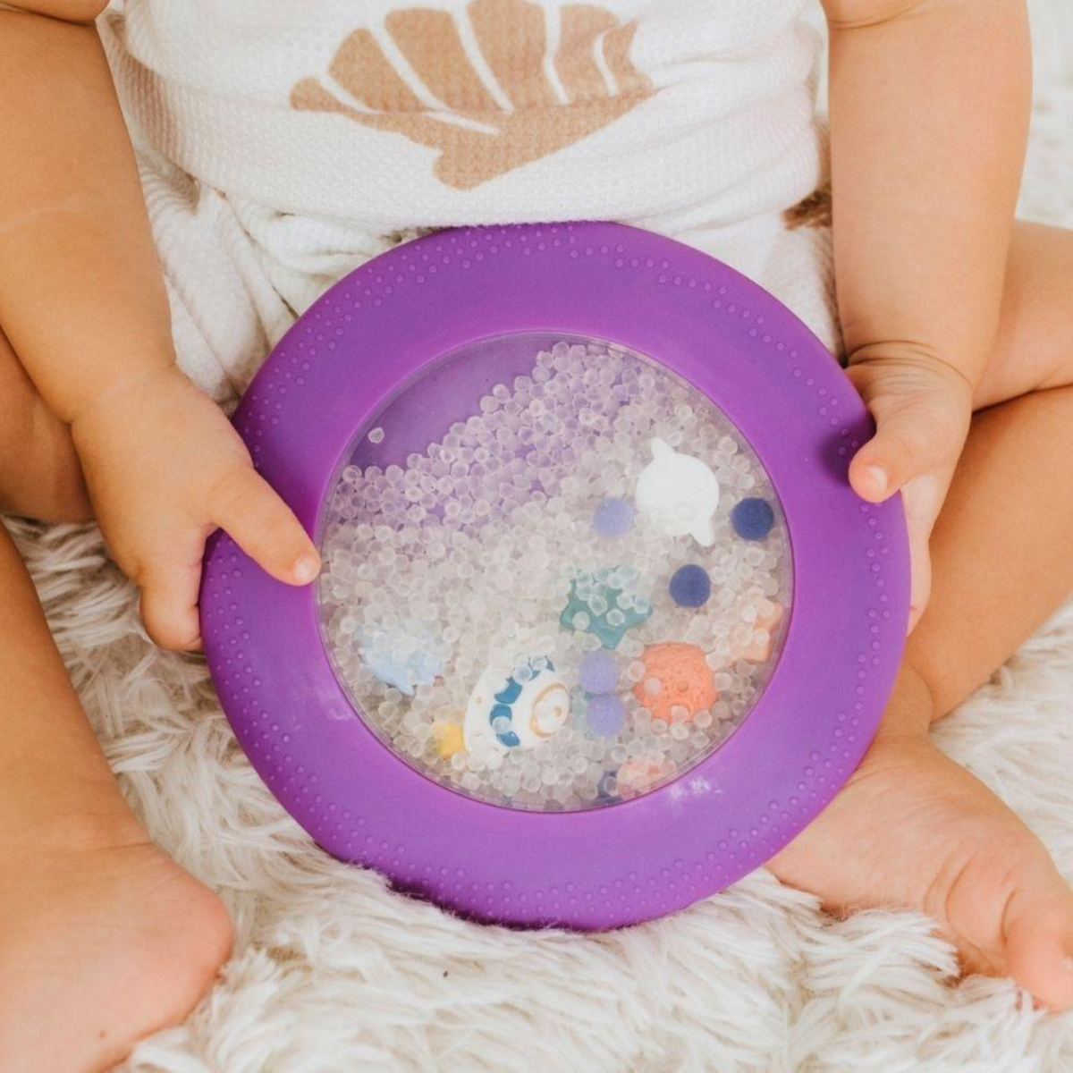 🔹 Desde bebés, puede utilizarse como material de estimulación sensorial, siempre con supervisión adulta. Apretar la bolsa, tocar su textura, observar el movimiento de las bolitas y las figuras a través de la ventana estimula la vista y el tacto, y ayuda a crear momentos de calma y regulación emocional.