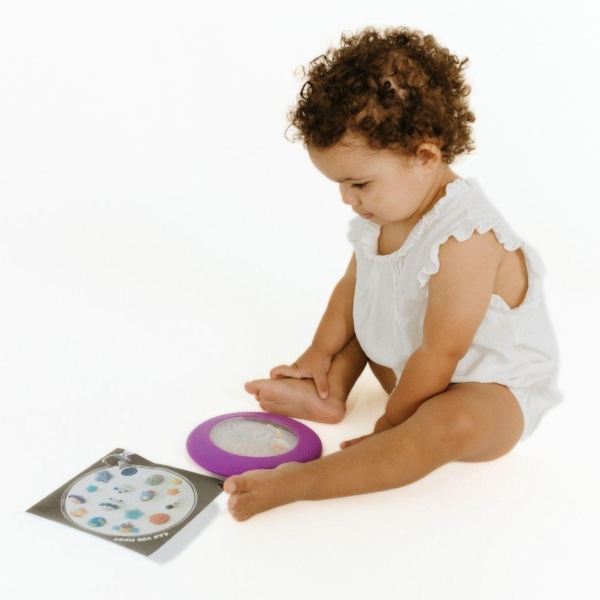 En su interior, pequeñas bolitas blancas esconden figuras temáticas que los niños deberán encontrar mirando a través de la ventana transparente. Las tarjetas de juego sirven como guía para buscar cada figura, favoreciendo la concentración, la atención y el juego repetitivo. Cuando la encuentren, solo hay que volver a esconderla y… empezar de nuevo. Porque repetir también es aprender.