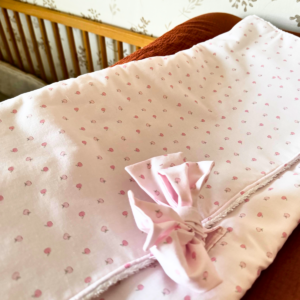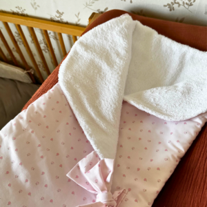 Su interior es de rizo blanco, muy suave y fácil de limpiar. Incorpora un acolchado extra para ofrecer mayor confort al bebé en cada cambio. Se cierra con una lazada y es totalmente lavable.