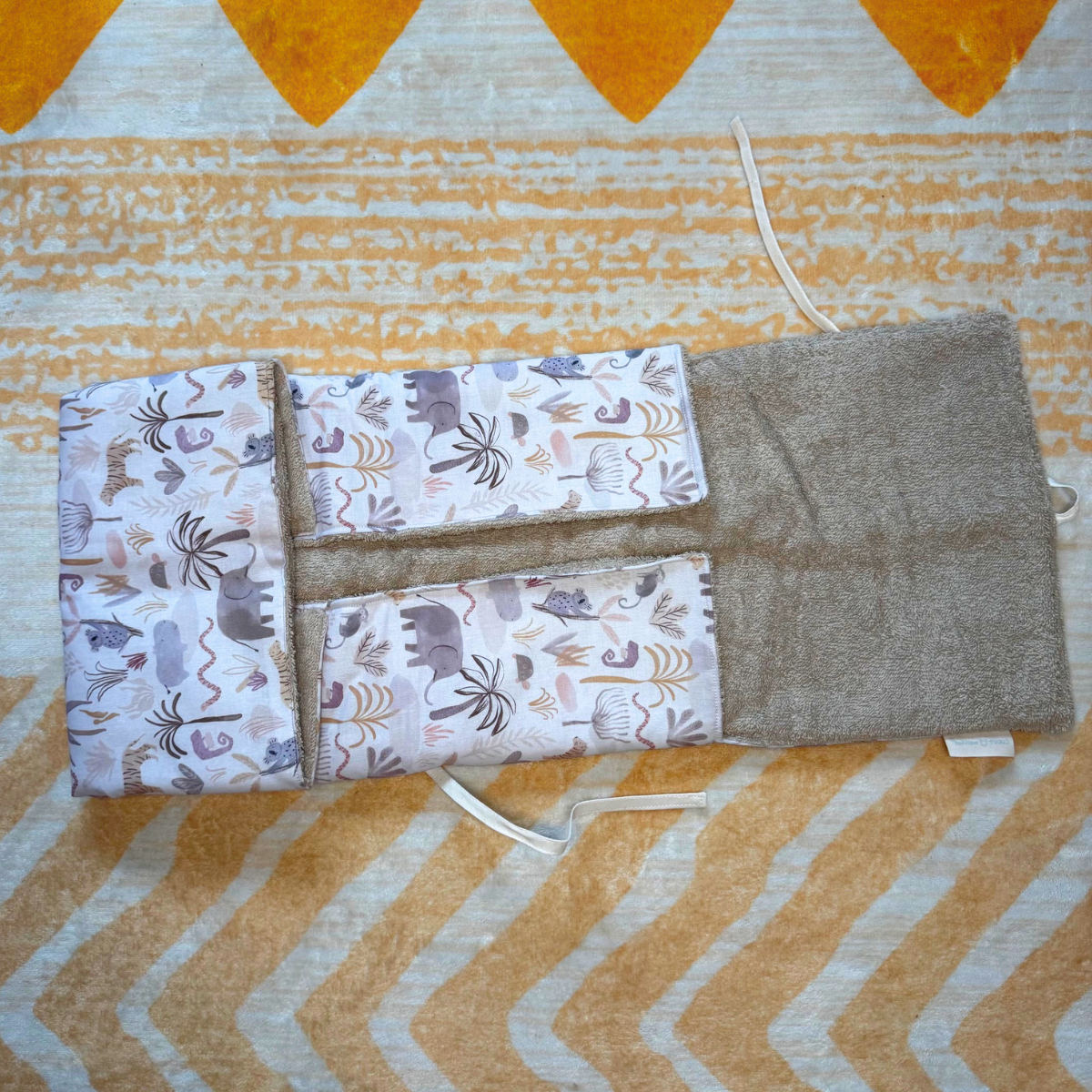 Su interior es de rizo blanco, muy suave y fácil de limpiar. Incorpora un acolchado extra para ofrecer mayor confort al bebé en cada cambio. Se cierra con una lazada y es totalmente lavable.