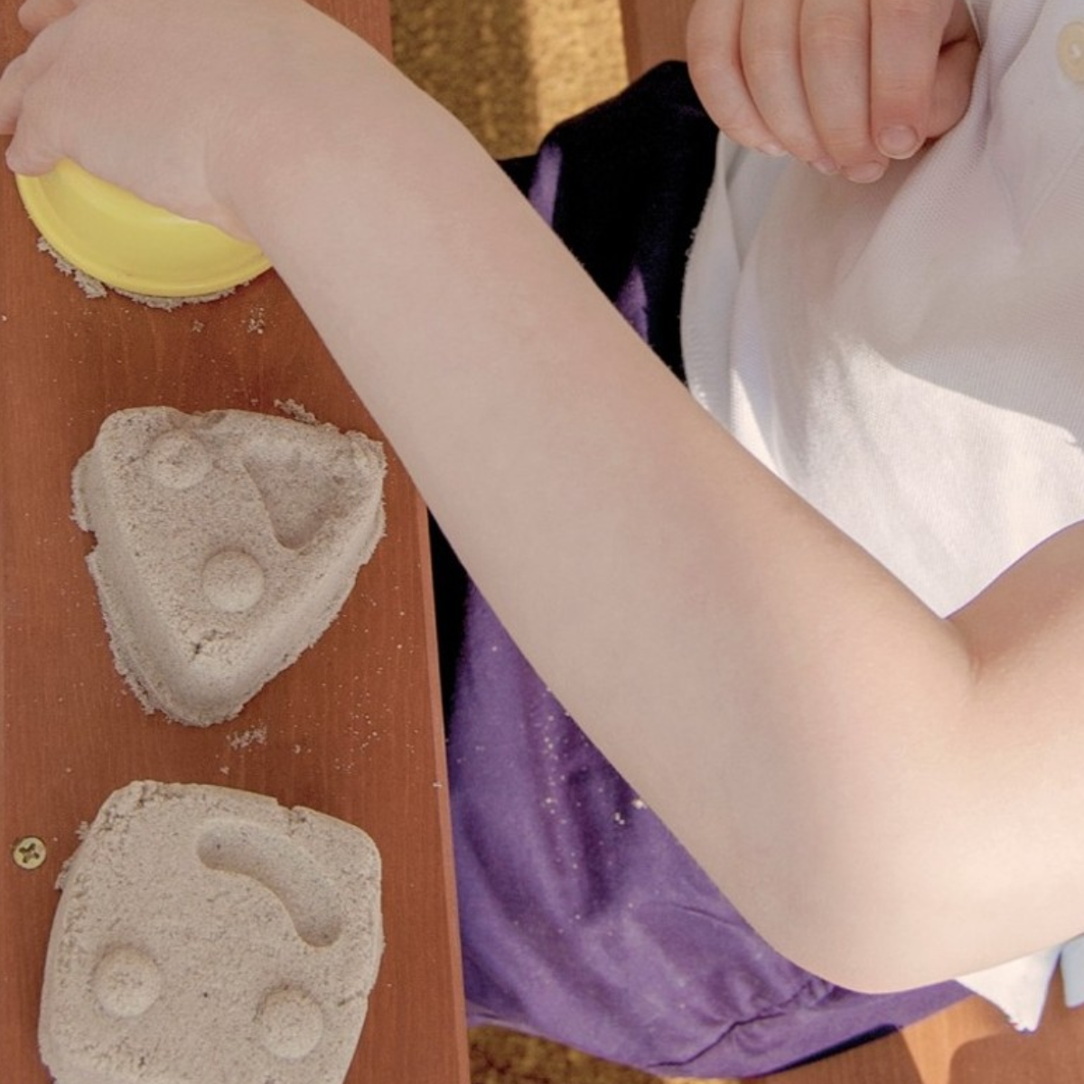 Cada set incluye cuatro formas divertidas: círculo, triángulo, cuadrado y media luna, perfectas para crear figuras en la playa, bandejas sensoriales, plastilina o arena cinética.